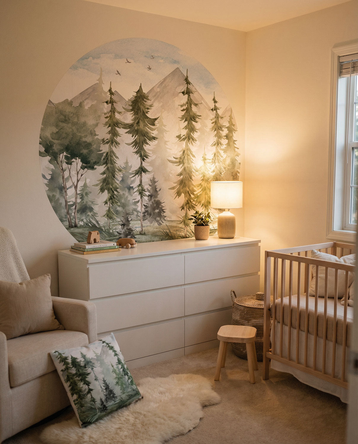 Bettaufkleber Set für IKEA Kura - Tannenwald Aquarell