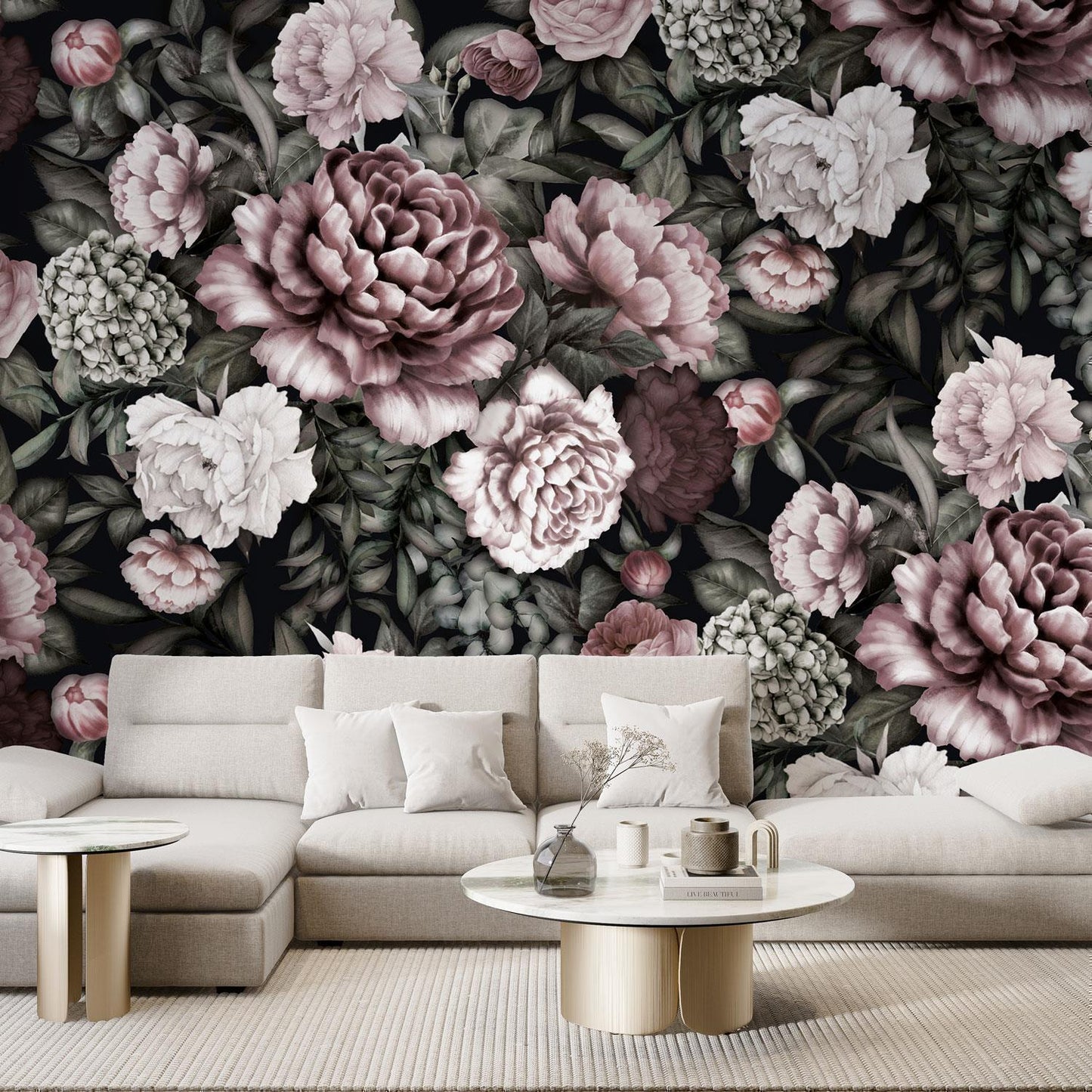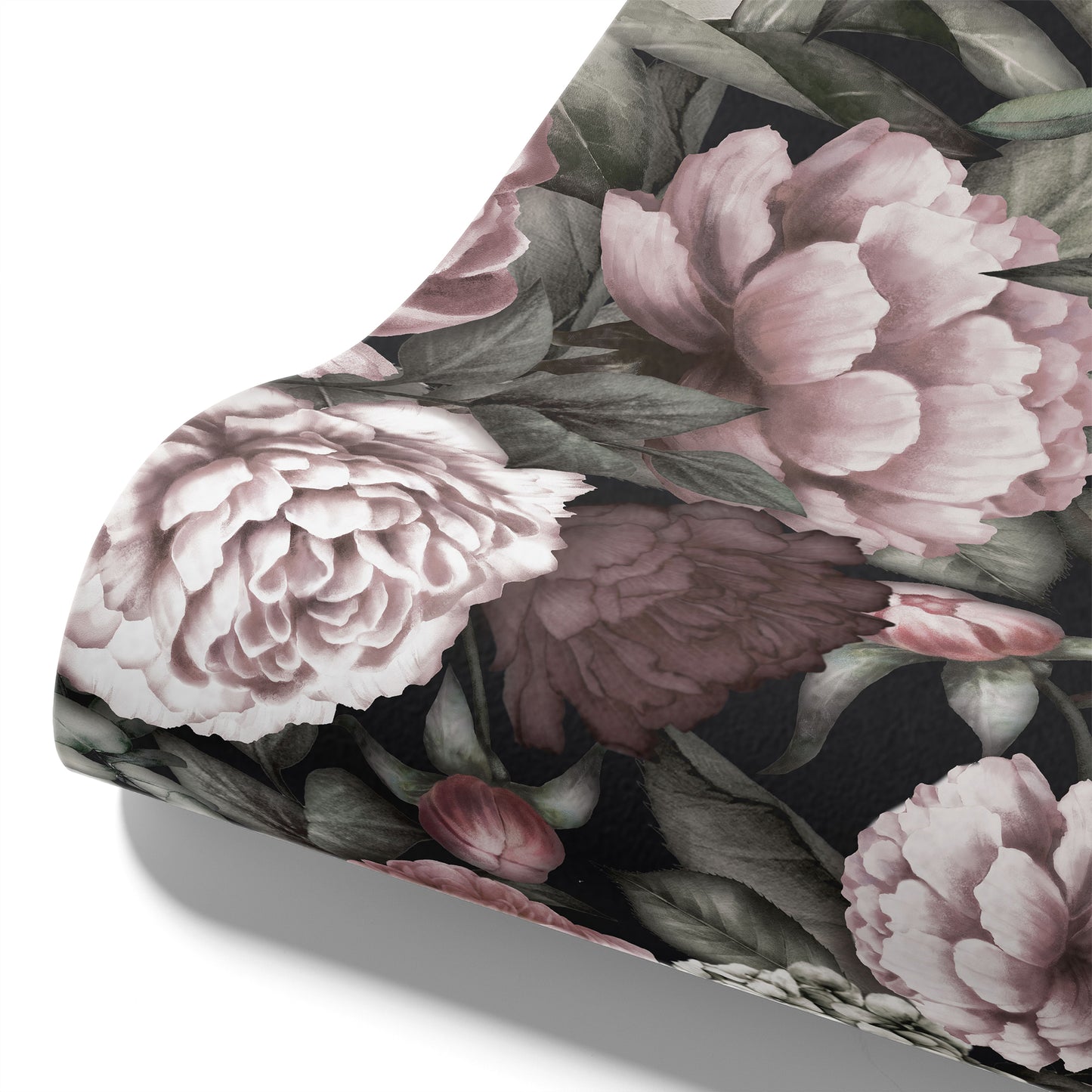 Unik Nordic Fototapete Pfingstrosen Muster - dunkel Premium Vliestapete