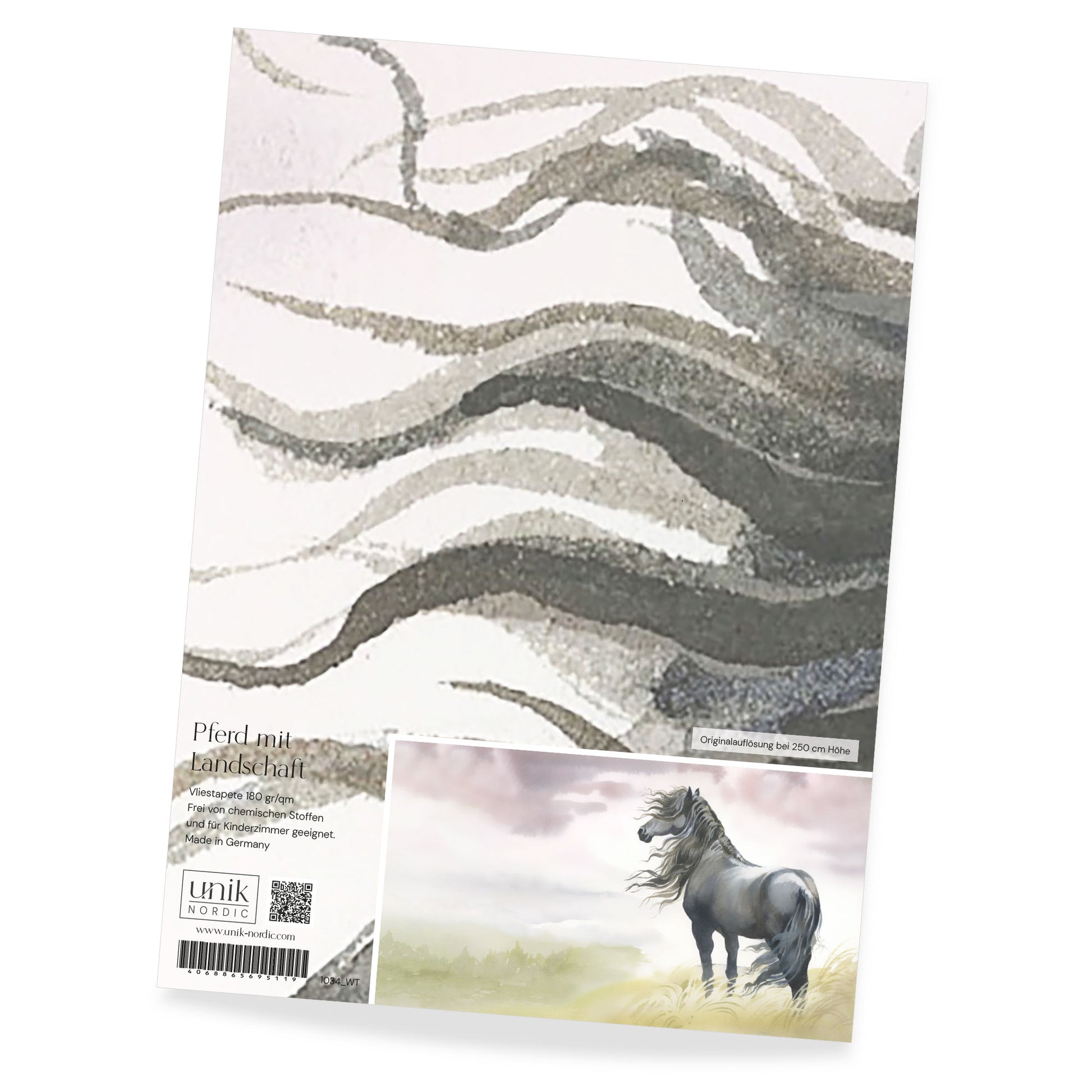 Unik Nordic Muster Kindertapete Pferd mit Landschaft