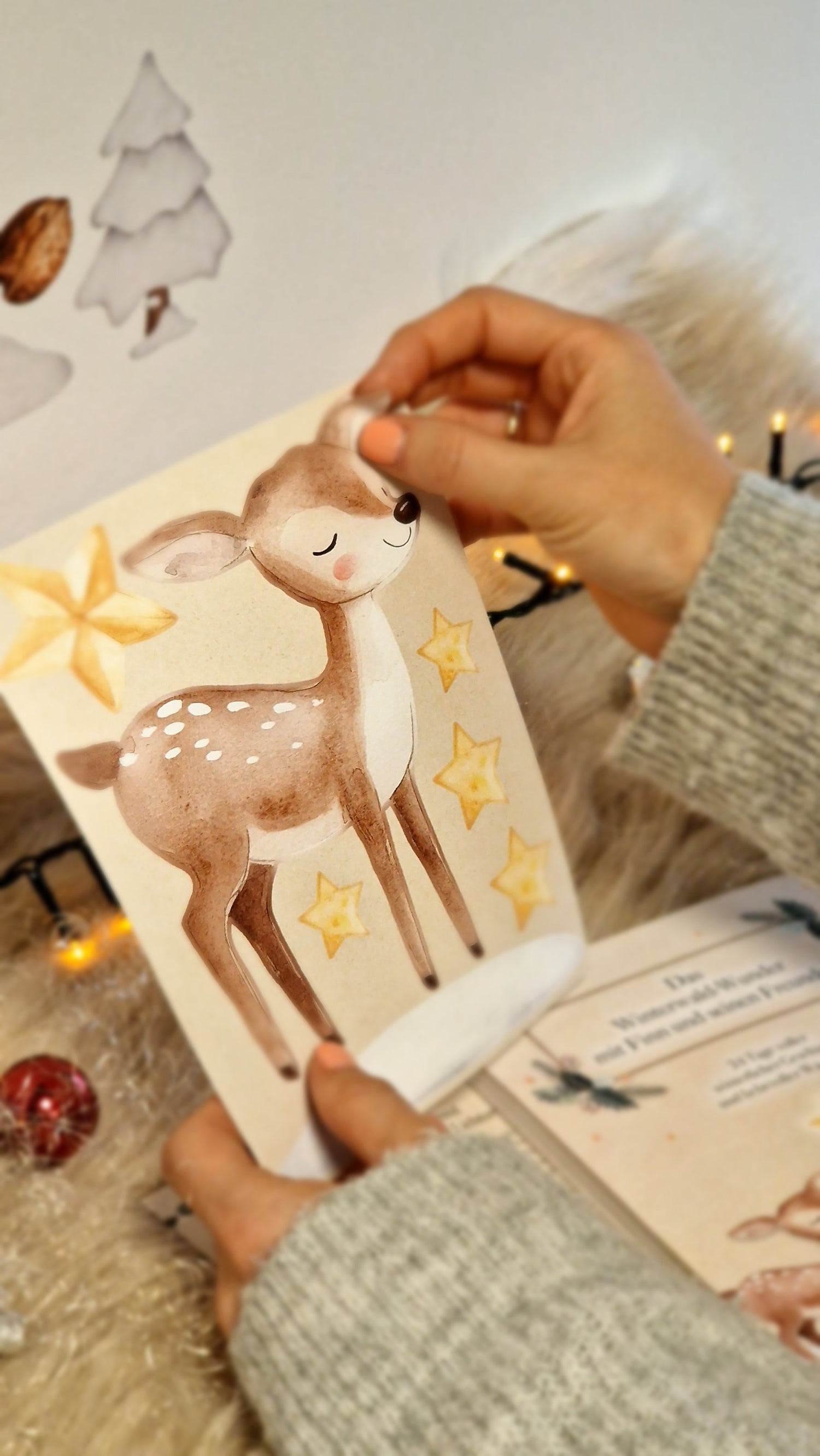 Discover the magic of the pre-Christmas season with our enchanting Advent calendar for children. Each day, your child will enjoy a new story and a lovingly designed sticker to help shorten the wait for Christmas. The cute design, featuring a little mouse holding a nut schnitzel in its paws, will bring a smile to any face. The warm colors and glowing stars create a festive atmosphere full of coziness and joy. Let your child's imagination shine and experience an unforgettable Advent season together. Perfect for little explorers and storytellers!