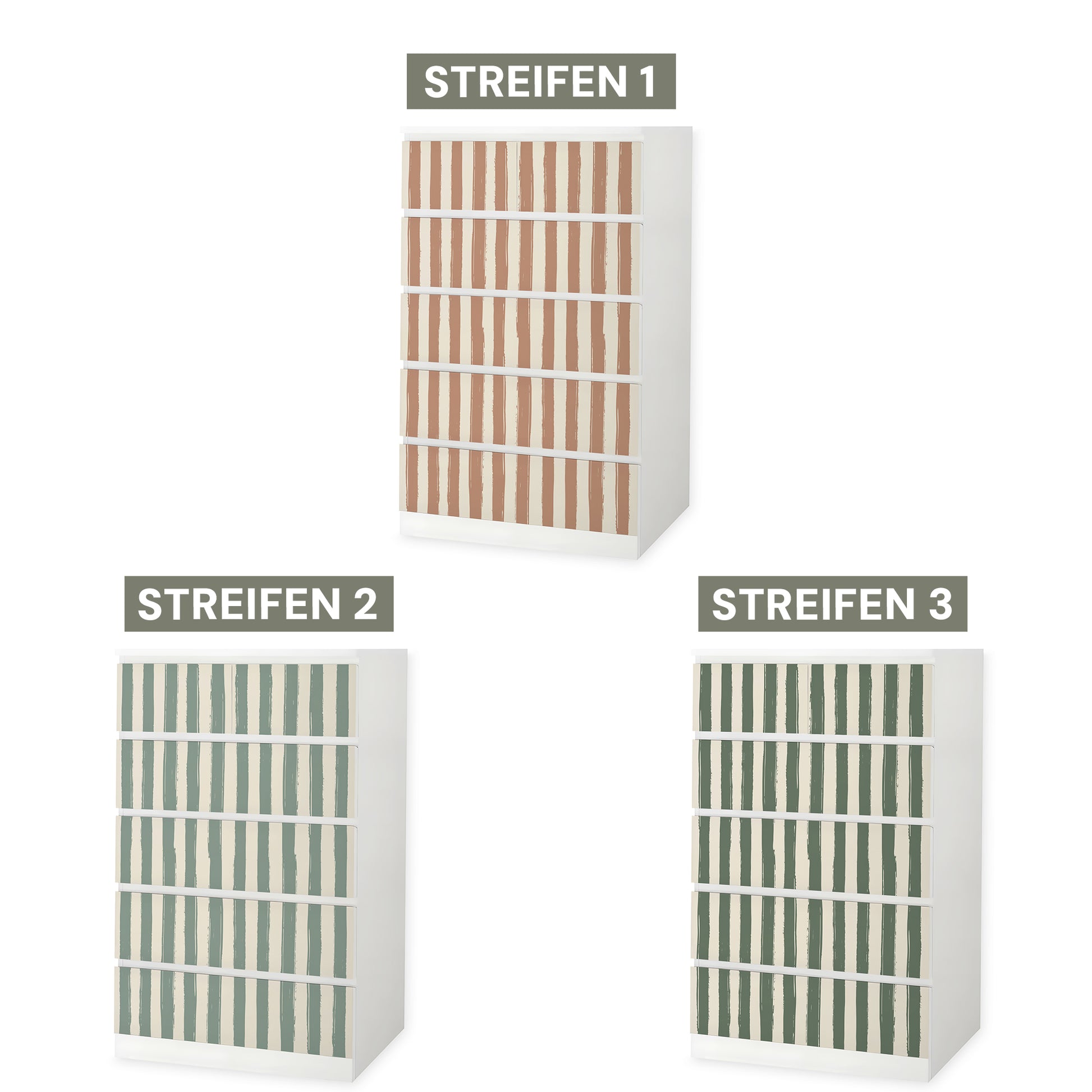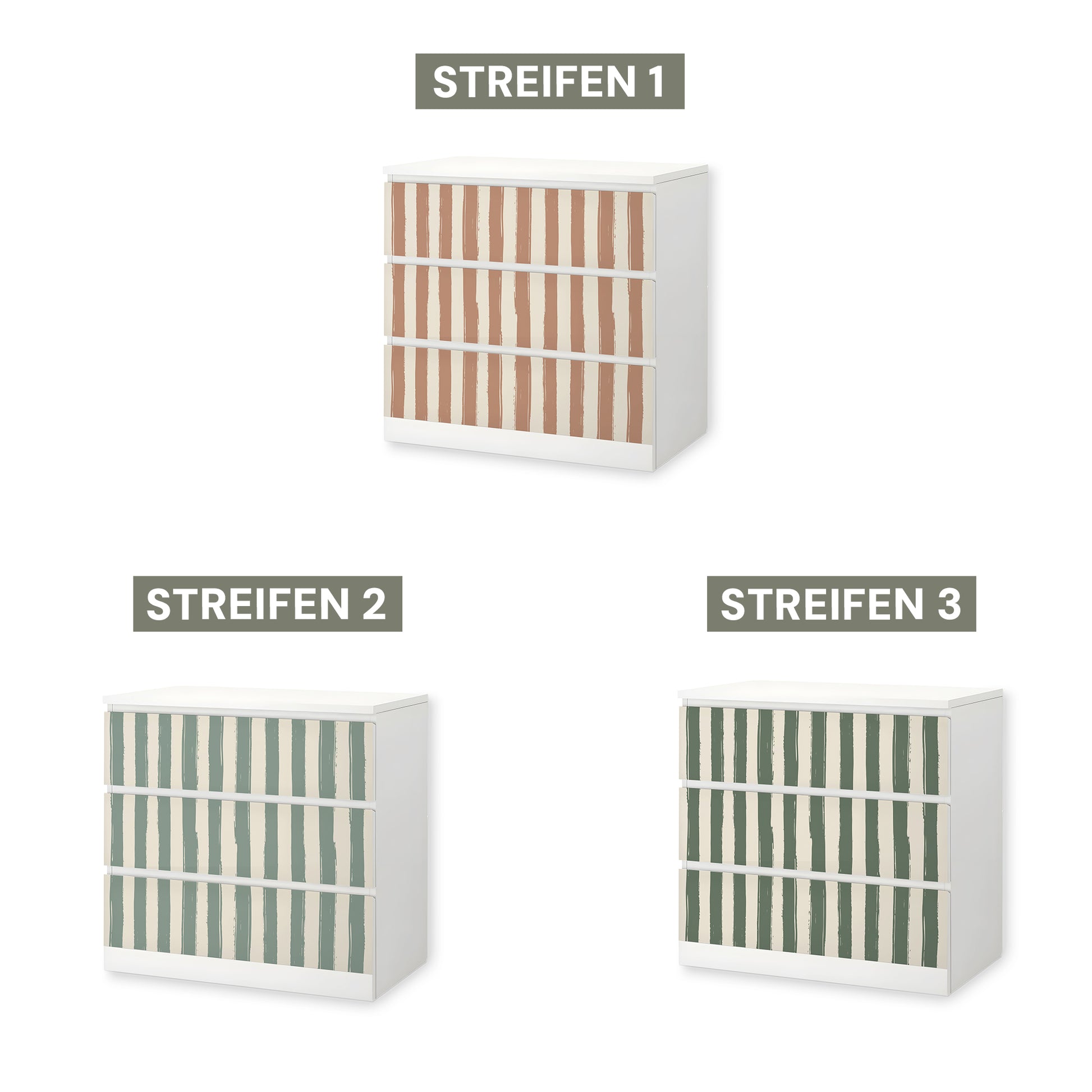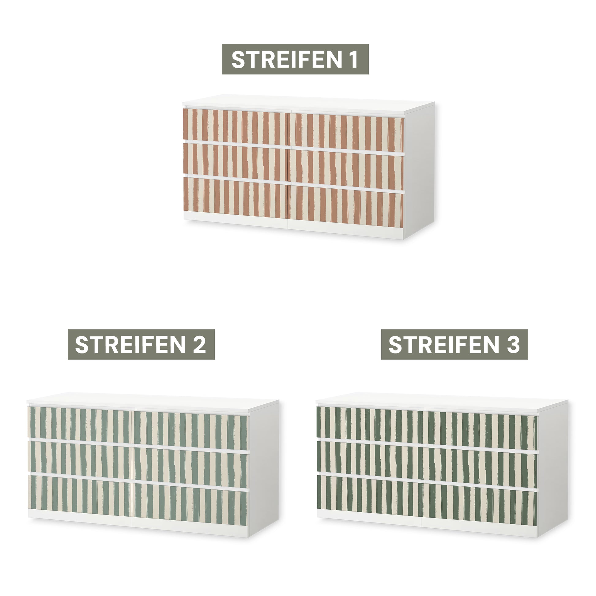 Diese Möbelfolie verleiht deiner MALM Kommode eine ruhige, stilvolle Struktur. Die drei harmonischen Farbvarianten sind perfekt auf die Traumzirkus Kollektion abgestimmt und bringen dezente Verspieltheit ins Kinderzimmer.