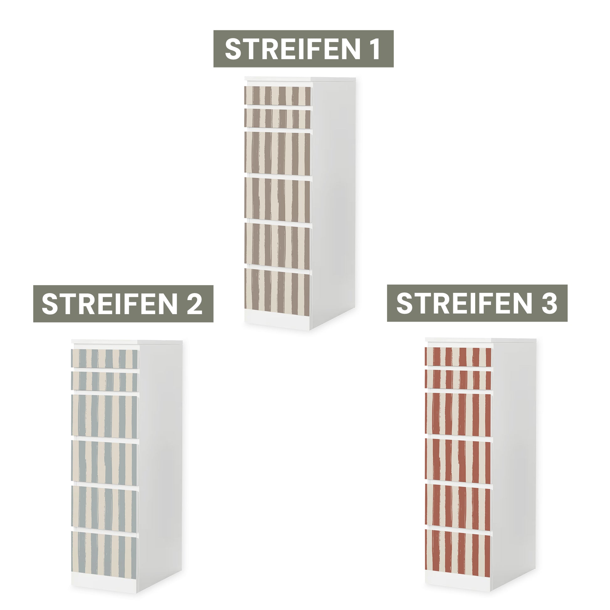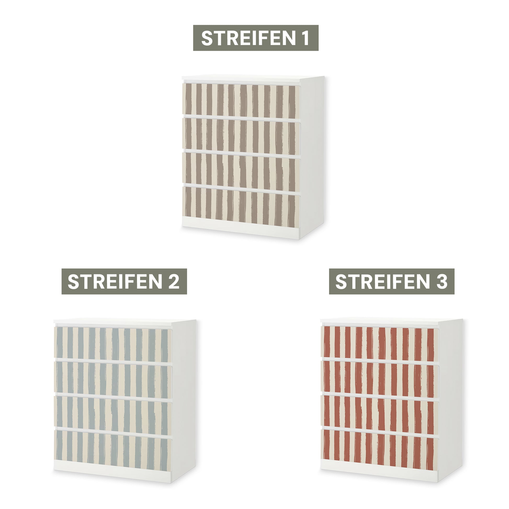 Diese Möbelfolie verleiht deiner MALM Kommode eine ruhige, stilvolle Struktur – wahlweise mit feinem Karomuster oder klassischen Streifen. Die drei harmonischen Farbvarianten sind perfekt auf die Traumzirkus Kollektion abgestimmt und bringen dezente Verspieltheit ins Kinderzimmer.