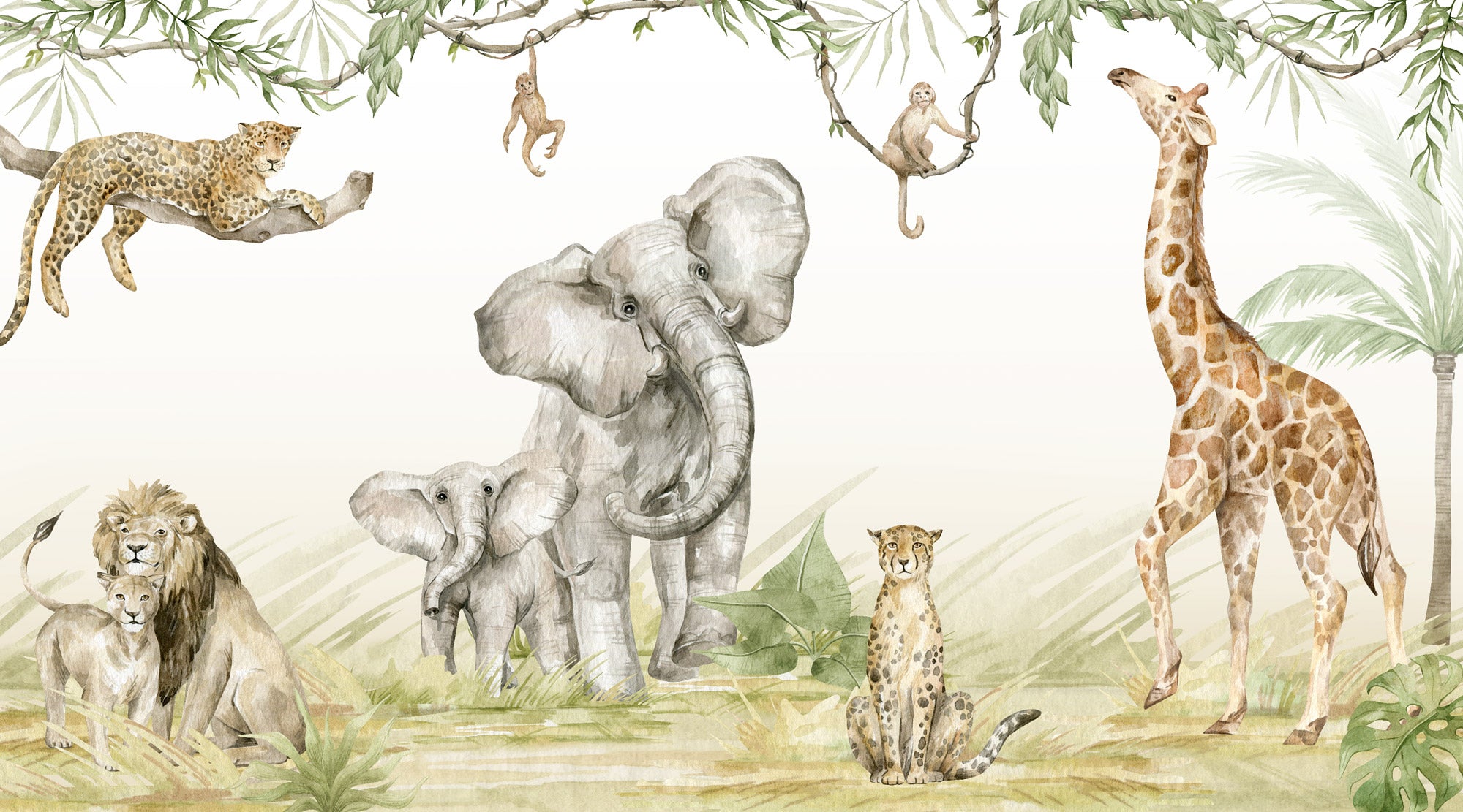 Children's wallpaper Safari Watercolor