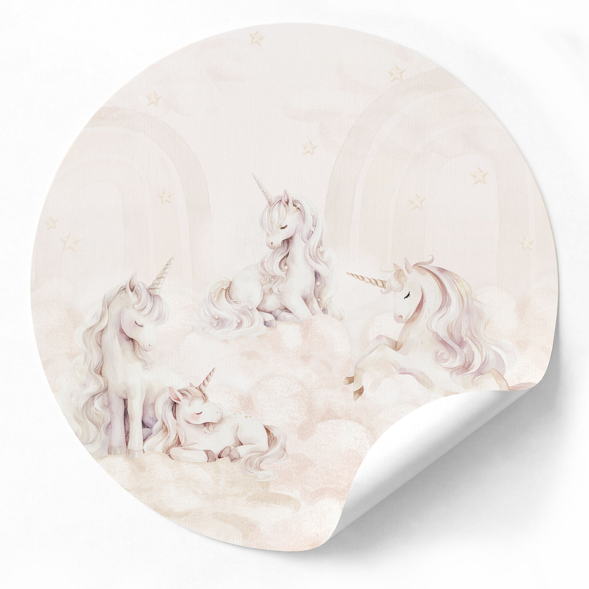 Der Tapetenkreis „Traumhafte Einhornwelt“ entführt in eine sanfte Fantasiewelt aus Wolken, Licht und leiser Magie. Zarte Einhörner ruhen zwischen weichen Pastelltönen und schaffen eine Atmosphäre, die Geborgenheit, Ruhe und kindliche Fantasie miteinander verbindet.