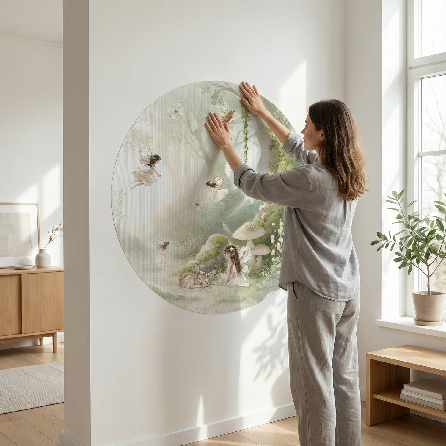 Unsere runden Tapeten sind so konzipiert, dass das Anbringen mühelos gelingt. Die selbstklebende Rückseite sorgt für sicheren Halt, lässt sich bei Bedarf korrigieren und verzeiht auch Unebenheiten der Wand. Ideal, wenn du schnell und unkompliziert einen starken Akzent setzen möchtest – ganz ohne Aufwand, aber mit maximaler Wirkung.