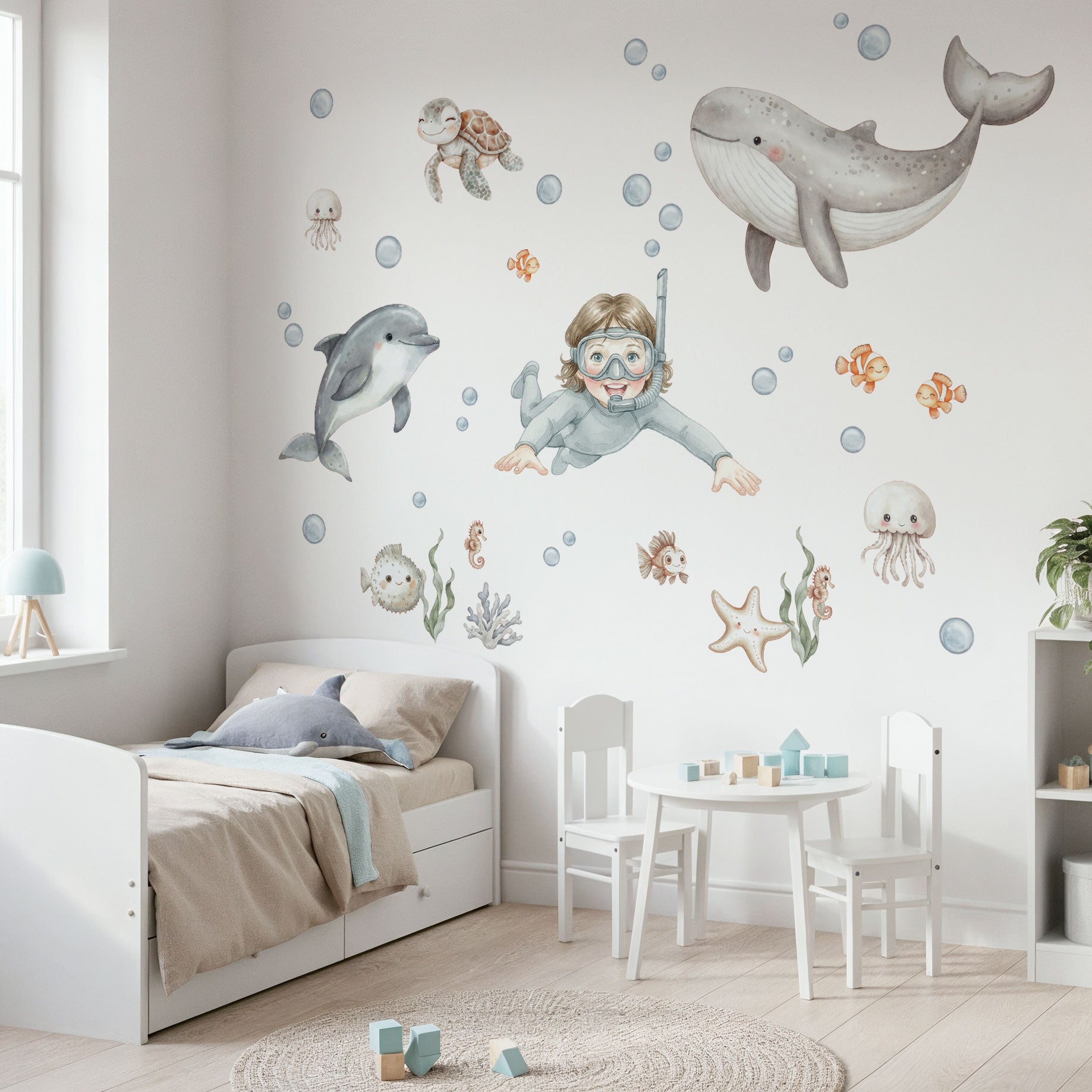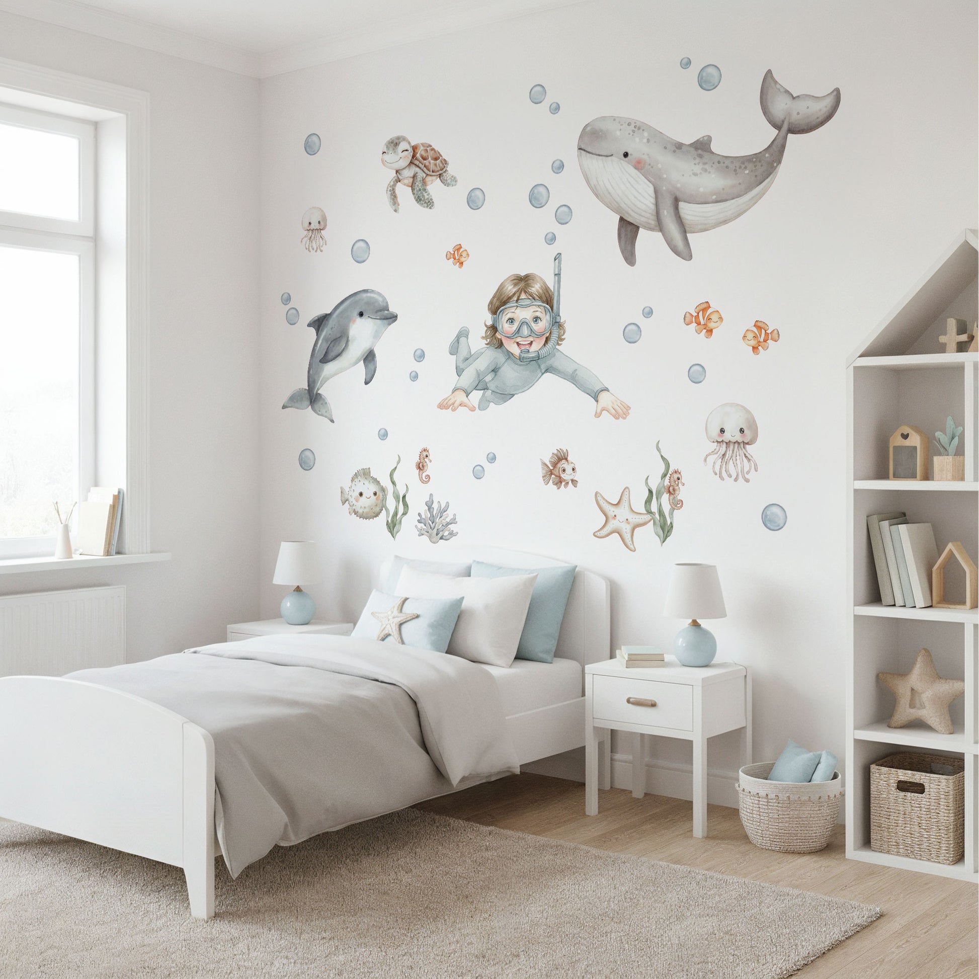 Verwandle das Kinderzimmer in eine zauberhafte Unterwasserwelt – mit Wandstickern, die dein Kind selbst zeigen!