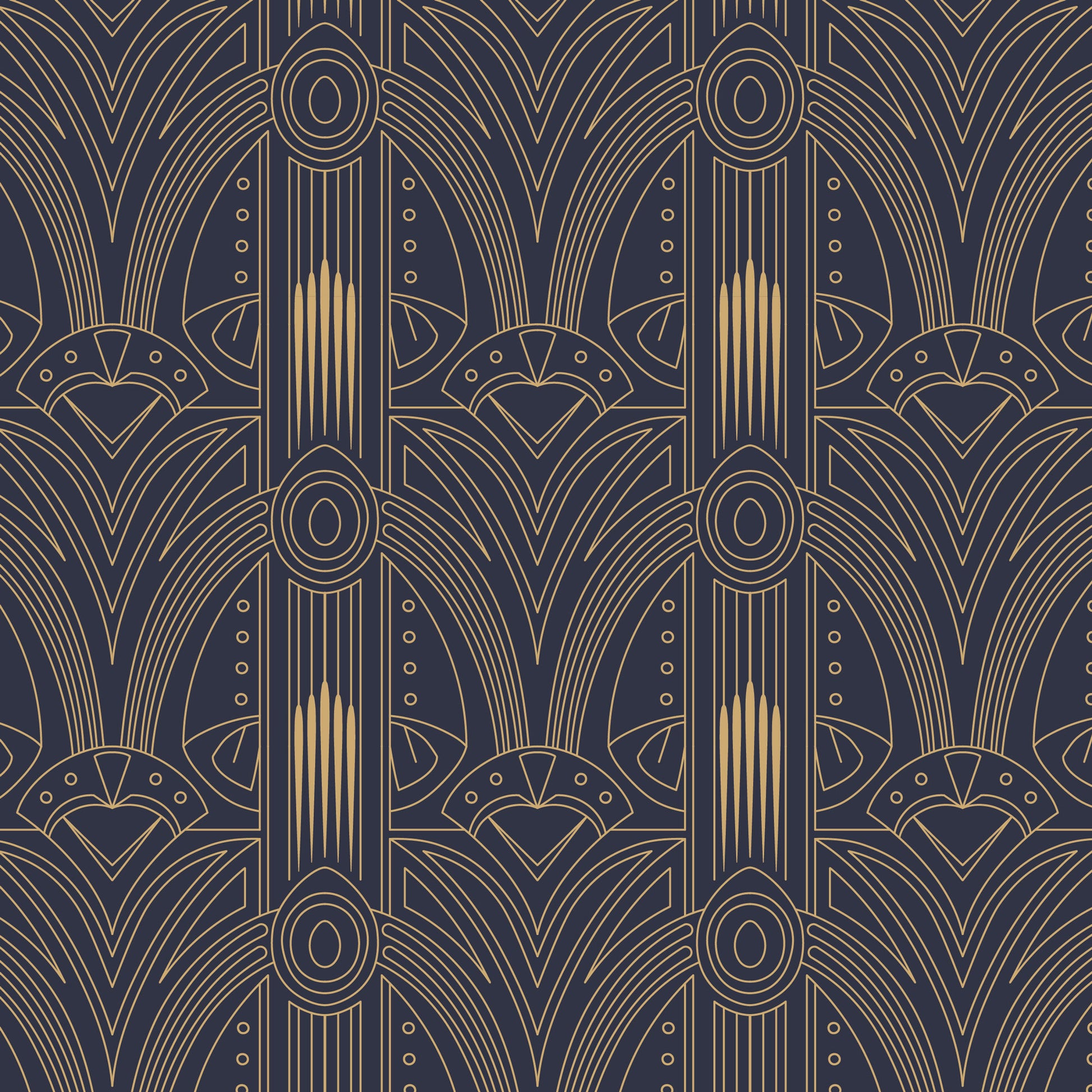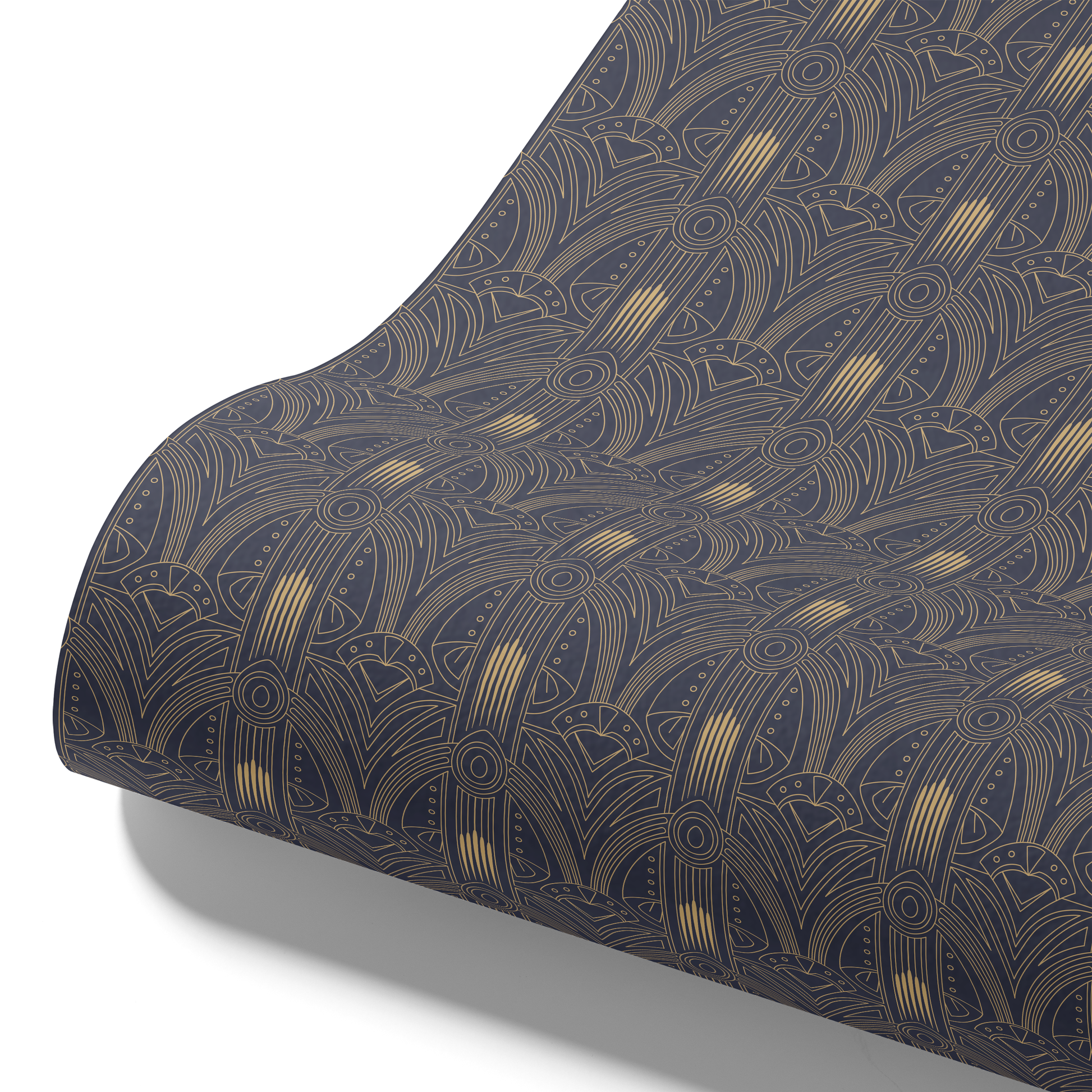 Strenge Geometrie, goldene Linien und ein tiefblauer Hintergrund – dieses Art-Déco-Muster bringt die Eleganz der Goldenen Zwanziger direkt in dein Zuhause. Ideal für eine Akzentwand im Wohnzimmer oder Flur, wo es seine volle Wirkung entfaltet. Das Zusammenspiel von Glamour und klarer Symmetrie sorgt für einen Look, der sowohl luxuriös als auch modern wirkt. Perfekt für alle, die ein ausdrucksstarkes Statement setzen möchten.
