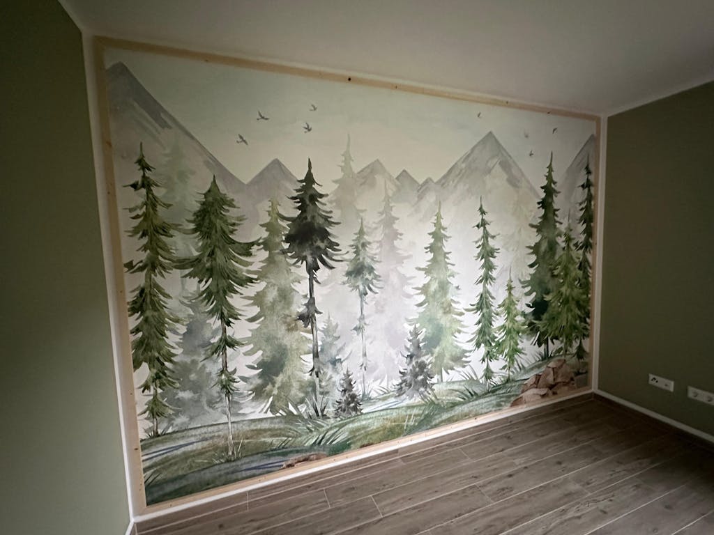 Unik Nordic Papier peint pour enfants forêt de sapins aquarelle Premium Vliestapete