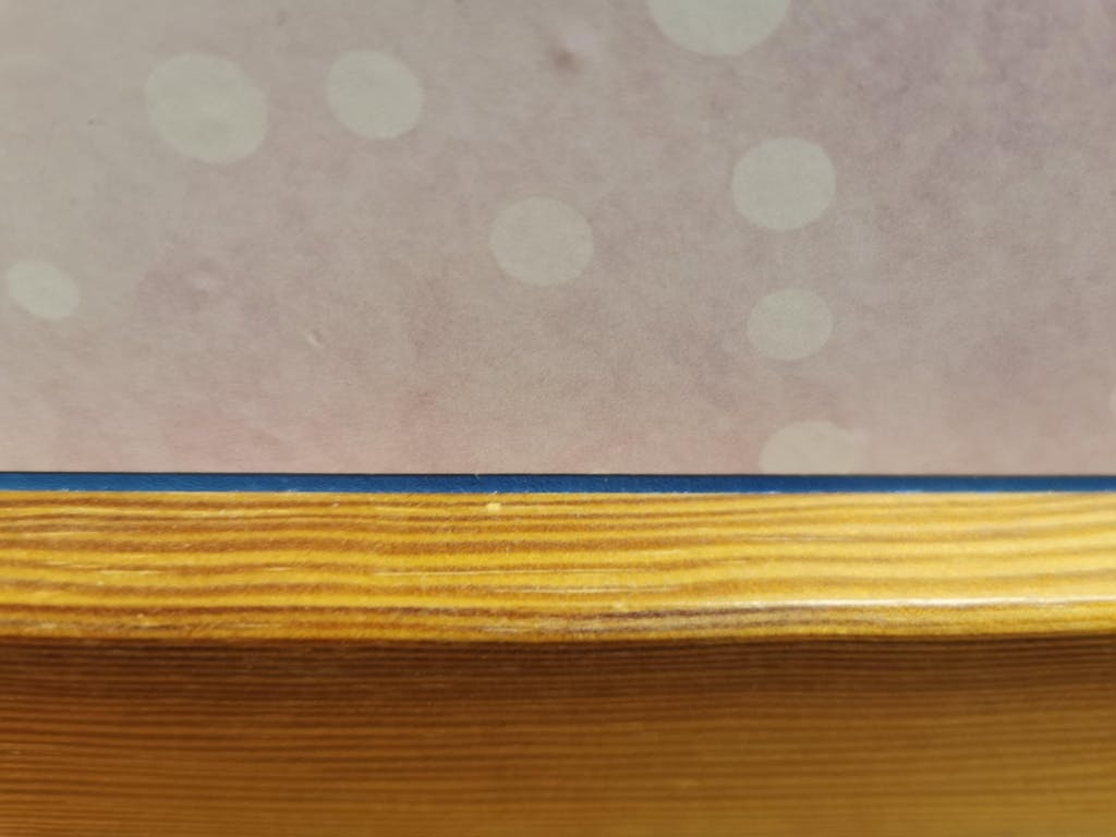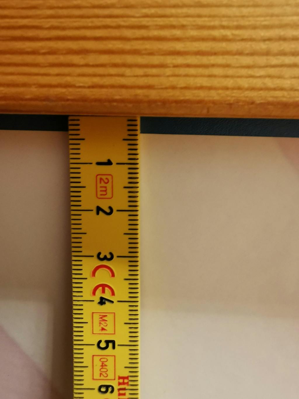 Die Folie ist wirklich schön, aber leider nicht so passgenau wie versprochen. Oben fehlt es um 4 mm und unten um 2 mm - so sieht man bei uns leider den blauen Hintergrund am Rand sehr stark und das macht an der Optik viel kaputt. Sonst deckt die Folie trotz blauem Brett perfekt. Zu diesem halben cm wurde mir vom Kundenservice nur mitgeteilt, dass ein wenig "Spielraum" normal und kein Grund zur Beanstandung ist. Ein wenig "Spielraum" stört mich auch nicht, nur leider so etwas zu viel für uns.