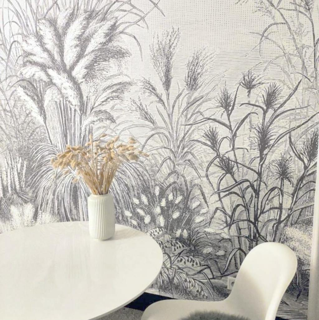 Unik Nordic Fototapete Holzschnitt Gräser-Zeichnung Premium Vliestapete