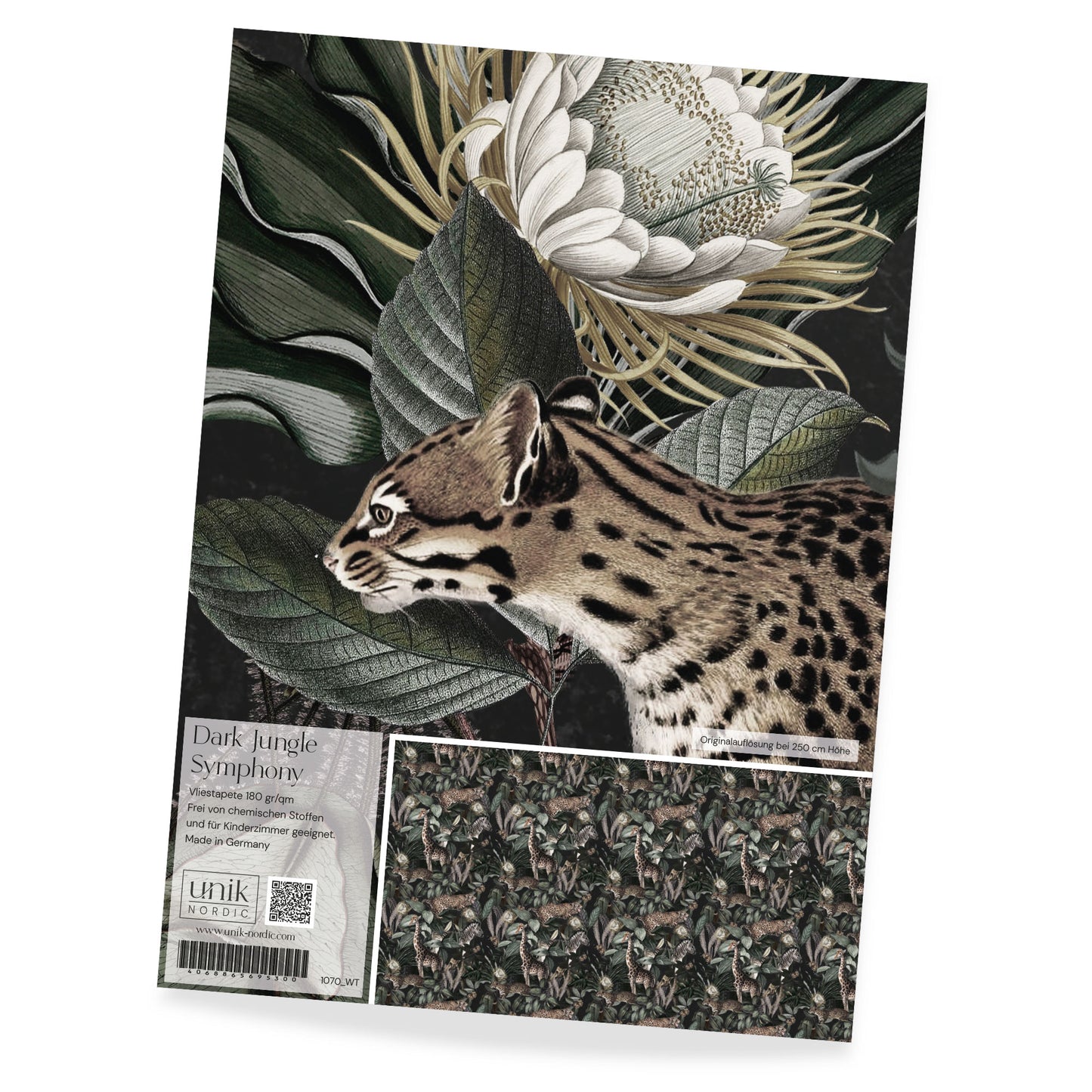 Das ist eine Materialprobe für Fototapete Dark Jungle Symphony, damit du dich in Ruhe von der Qualität und dem hochwertigen Druck überzeugen kannst.